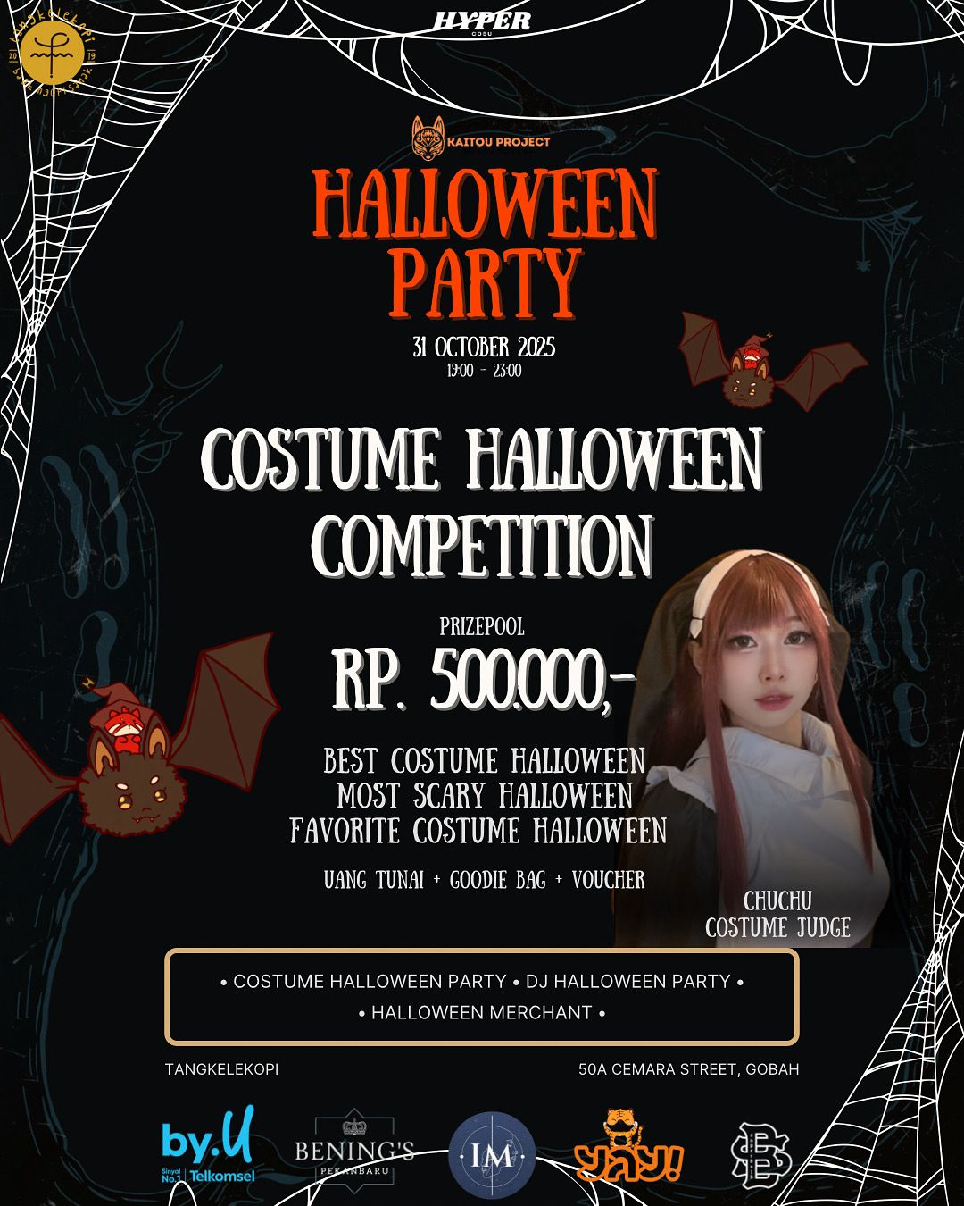 ๐ŸŽƒ HALLOWEEN PARTY 2025 ๐Ÿ‘ป Diselenggarakan oleh HYPER COSU x KAITOU PROJECT ๐Ÿ“… 31 Oktober 2025 ๐Ÿ•– 19.00 โ€“ 23.00 ๐Ÿ“ Tanglelekopi, 50A Cemara Street, Gobah Bersiaplah untuk malam paling spooky, seru, dan penuh kejutan! Nikmati keseruan: ๐Ÿ’€ Costume Halloween Party ๐ŸŽง DJ Halloween Party ๐Ÿ›๏ธ Halloween Merchant โธป โœจ Dress Code & Costume Rules: […]