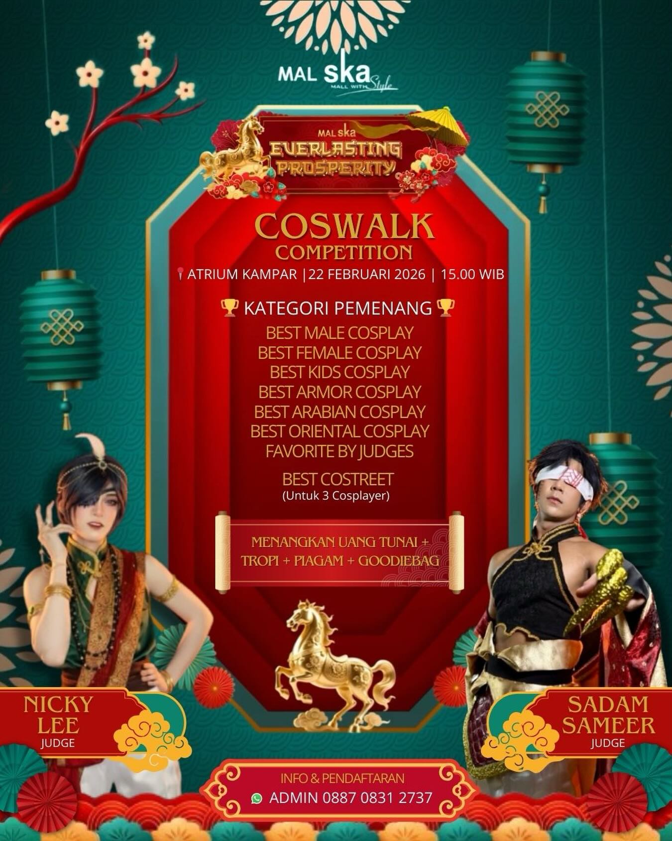 Calling all cosplayer ๐Ÿซต๐Ÿป Special event perayaan Imlek 2577 & Ramadhan 1447 H, ๐ŸฎEverlasting Prosperity @malskapekanbaru ๐Ÿงง โœจ Coswalk Competition โœจ Minggu, 22 Februari 2026 | pukul 15.00 WIB s/d selesai Lokasi Event : Atrium Kampar Mal Ska Pekanbaru Yukkk segera Daftarkan diri kamu, untuk mengikuti event Cosplay Competition kali iniโ€ฆ ๐Ÿ† Kategori Pemenang Coswalk […]