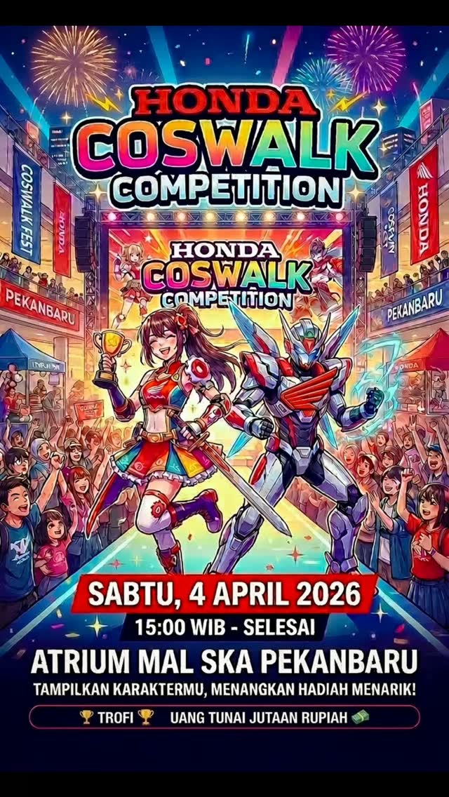 ๐Ÿ”ฅ HONDA COSWALK COMPETITION 2026 ๐Ÿ”ฅ Siap-siap jadi pusat perhatian dan tunjukkan karakter terbaikmu! ๐ŸŽญโœจ Ajang cosplay paling hype akhirnya hadir di Pekanbaru โ€” penuh aksi, gaya, dan energi luar biasa! ๐Ÿ“… 04 April 2026 ๐Ÿ“ Atrium Mal SKA Pekanbaru โšก Akan dinilai langsung oleh para juri : ๐ŸŽฏ Sadam Sameer ๐ŸŽฏ Ren Kurenai ๐ŸŽฏ […]